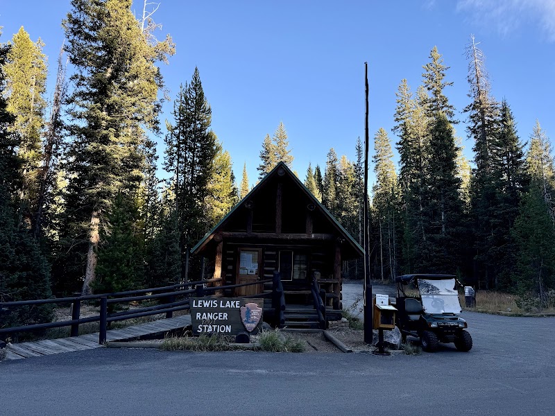 Lewis Lake Campground sits at 7,800 ft along the southeast shore of Lewis Lake, eight miles from the South Entrance. A boat ramp sits near the campground information and registration area, and canoe, kayak, and motor boats are allowed on Lewis Lake. Boat permits and an aquatic invasive species inspection performed by park staff are required. This National Park Service campground is reservable and offers lakeside access with forested surroundings.