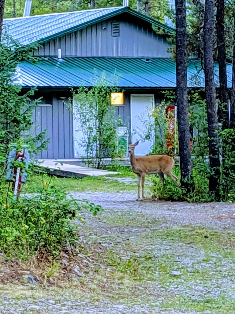 We planned to stay for a week. However there is no sewer at the campsite, although listed as full hookups. There is a on-site dump but it was hard to get to we have a 41ft fithwheel and there are low hanging branches off the trees and steep inclines and declines the turns are tight with picnic tables rvs sticking out and random vehicles. There was a random yellow lab walking the grounds and dog poop everywhere. We have a dog and are very diligent about picking up poop so this was super frustrating as the rules even spoke about dogs and poop. The laundry facilities were falling apart, we were not given a map so we had to figure it out the little red building needed work the machines were missing covers. And were very dirty. The office was never open per it's hours. There were random trailers and vehicles parked in spots around us and in the spot right next to us a truck that was having maintenance done. So it smelt like diesel the entire time we could not sit outside and enjoy the scenery because it stunk. The trash was overflowing until our last day there. It had not been emptied prior to our arrival it stunk and there were tons of flies. The only good thing they have going is the proximity to the NP Galcier, is super close less than 10 min. But for the price it should have been better. We left two days early because we couldn't bare the smell anymore, THE SMELL of diesel fuel was coming into our RV. I asked for money back due to the issues/wanting to leave early. I have received no reply. I would recommend somewhere else.