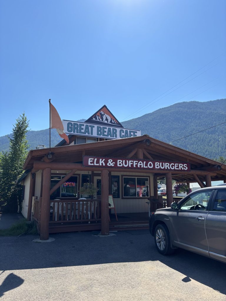 Great Bear Cafe is THE place to go for a moist, thick, delicious elk or bison burger. Their food was so delicious, we visited two days in a row! It is worth adding the huckleberry-cherry compote on top (or on the side). This huckleberry reduction is just the right amount of sweet, without the tartness.The staff are friendly, engaging, and able to adjust orders to meet dietary needs. Lettuce wrap in place of a bun for a gluten friendly order.Try a huckleberry-lemonade slushie, you will not be disappointed!