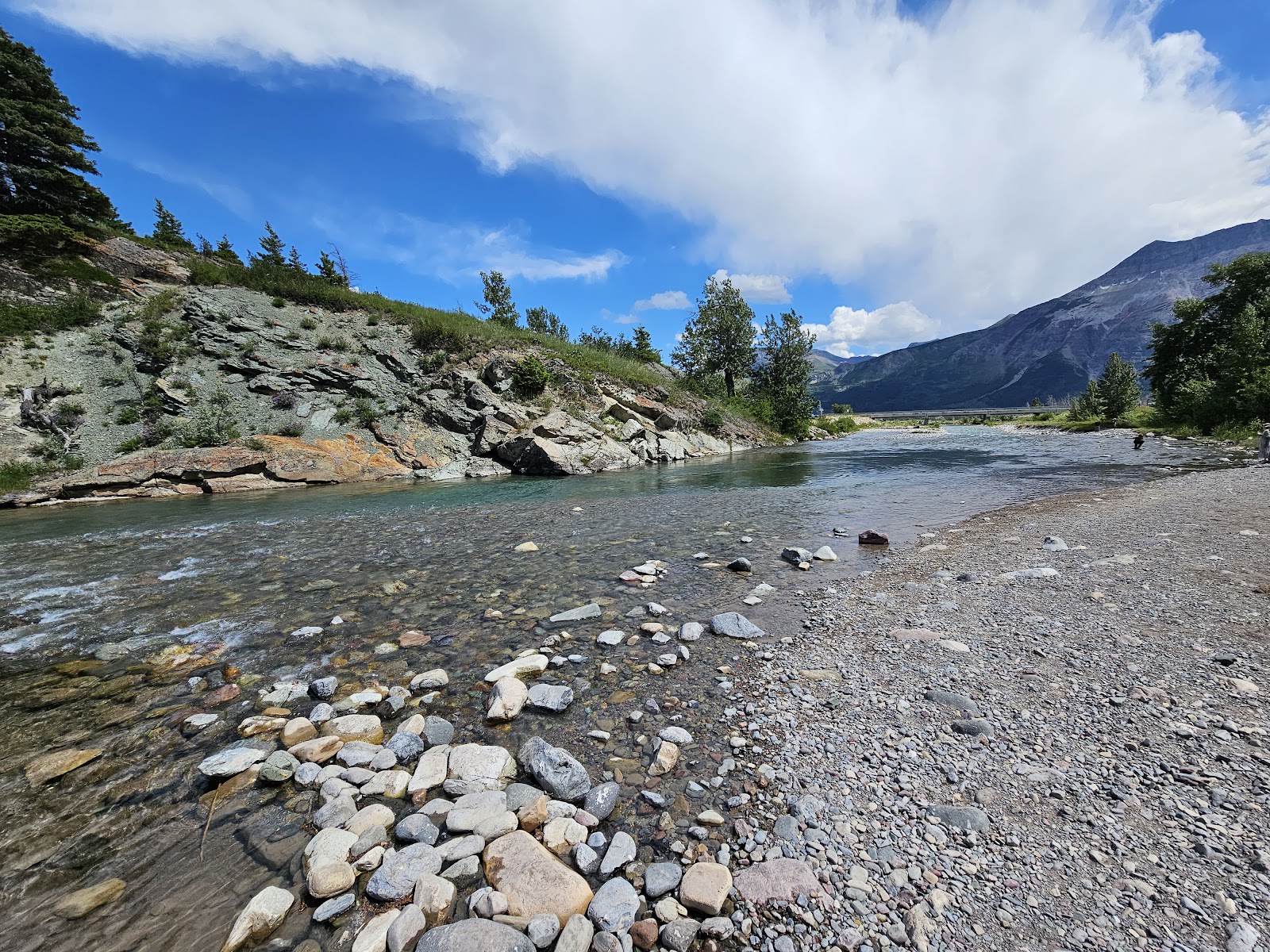Great picnic area. On the Marina it can get quite windy & hard to picnic but this pass creek is amazing its small but has a common sheltered area with many benches fire pits and even washroom. However in peak season it can get quite busy with less parking. The river beside it is the cherry on top the view are great and kids had lot of fun on river while we were preping meals. Over all highly recommend picnic area in Waterton. Follow for more.