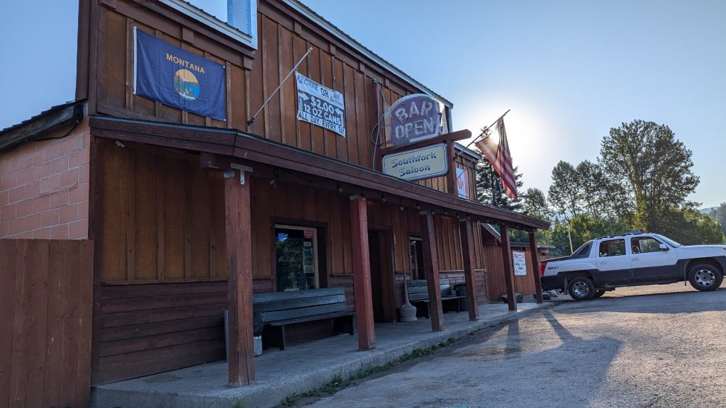 Casual rural Montana pub with dog-friendly outdoor seating and live music.