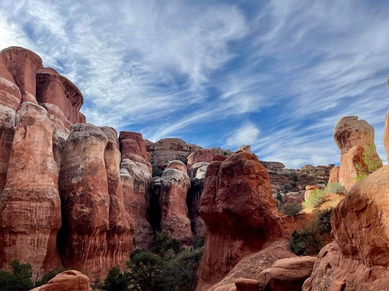 Fiery Furnace Viewpoint parking; nearby facilities exist in the park but interior access is backcountry