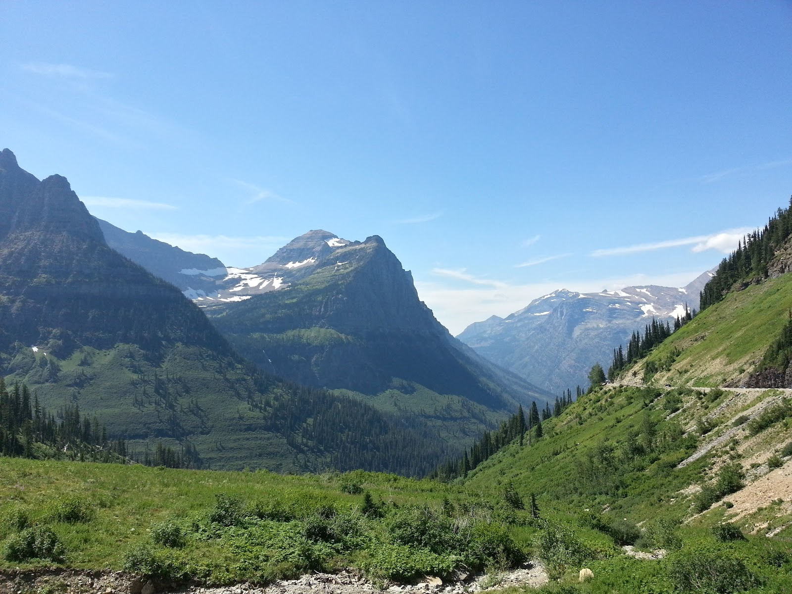 Loved hiking this trail. Took the more difficult route to Logan's Pass. Highly recommend you fuel up with a hefty meal and hydrate hours before the hike. Snack during the hike to keep up your energy. I know the park pushes bear spray but I have had more success using a rescue or emergency whistle. They work well so maybe carry that as well as bear spray. This was our encounter almost 3/4 of a mile in.